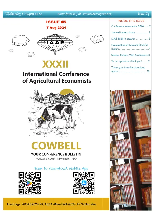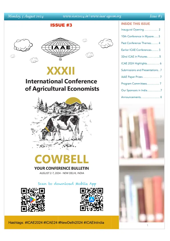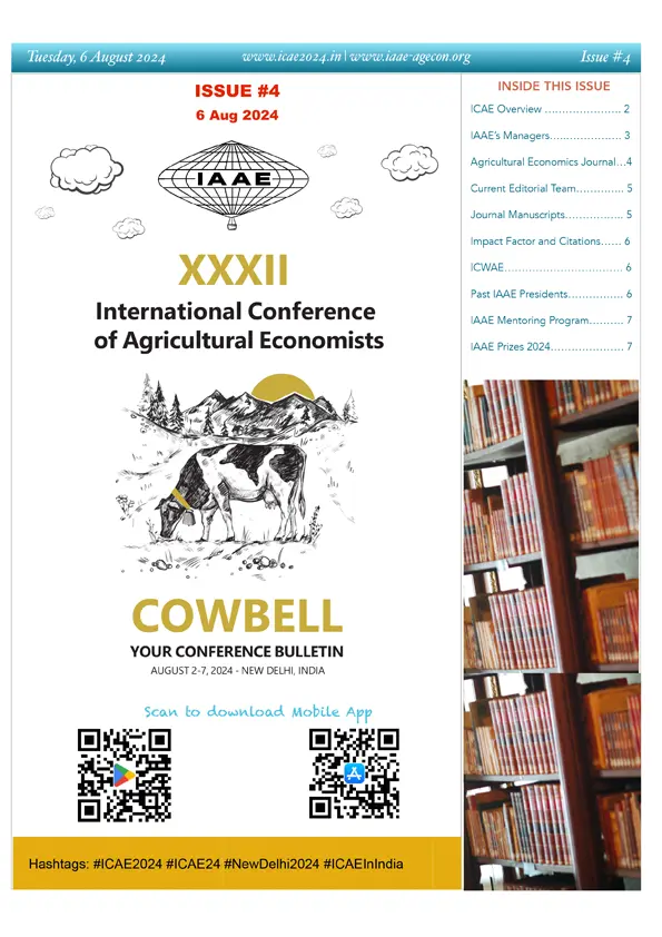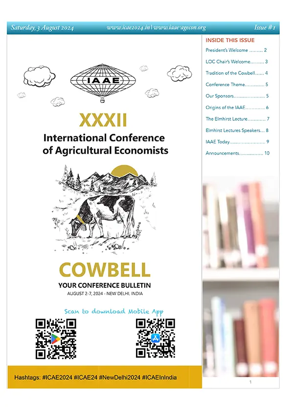 In about three months from now, IAAE’s cowbell will ring to mark the formal opening of the 32nd International Conference of Agricultural Economists (ICAE) to be held in New Delhi, India (2-7 August 2024). We are all very excited to meet again for this conference in-person for the first time after six years. As you know, ICAE is a triennial conference, but in 2021 it had to be held virtually due to the pandemic. It is really high time for an in-person international jamboree of agricultural economists.